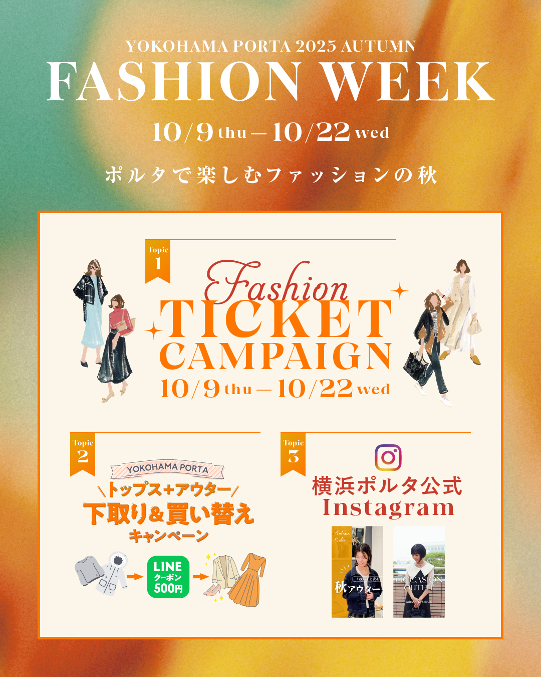 10月9日(木)~10月22日(水)の間、ポルタでは『ファッションウィーク』を開催!
