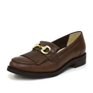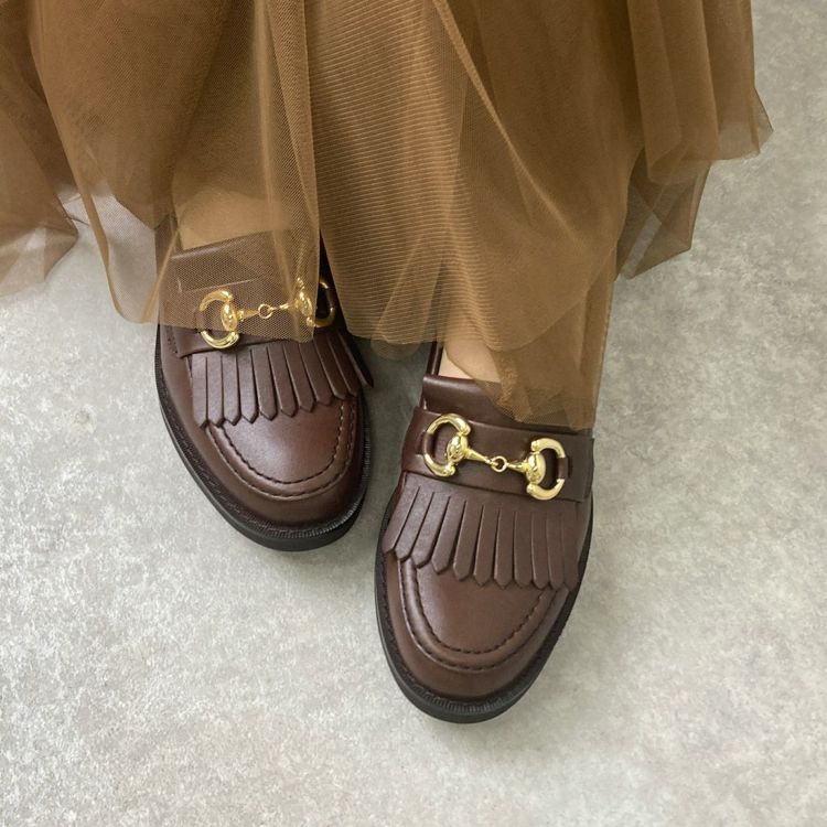 クラシカルなフリンジ×ビットの組み合わせは、足元に上品なアクセントをプラス。カジュアルコーデはもちろん、きれいめスタイルにも馴染む万能デザインで、毎日のコーディネートを格上げしてくれます。程よい厚みのソールで安定感があり、歩きやすさも◎。通勤・休日のお出かけなど、幅広いシーンで頼れるローファーです。