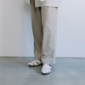 編み込むように重なり合ったアッパーデザインが印象的で、シンプルな装いにもさりげない個性をプラス。上質なレザーを使用し、やわらかく足を包み込むような履き心地が魅力。つま先とかかとを程よくカバーしながら、サイドのカッティングで軽やかさを演出します。