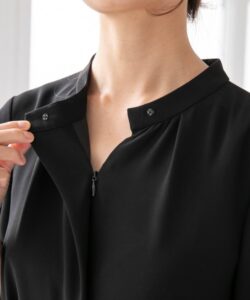 普段使いもしやすいシンプルなデザインで重宝します。袖には長さ調節が可能になるスリット入り。