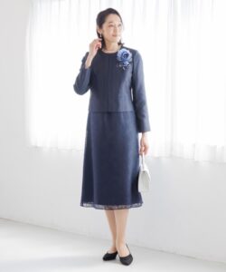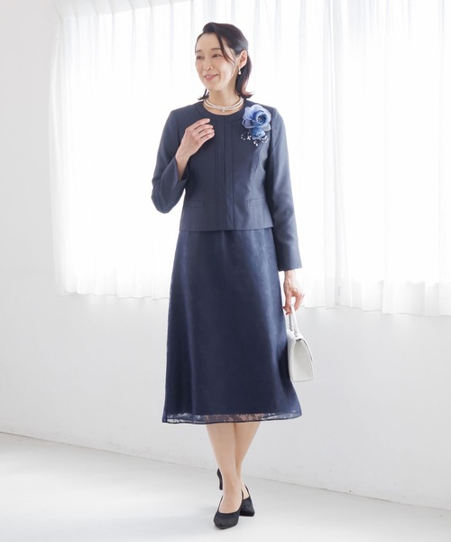ジャケットとワンピースで、格式あるセットアップスタイルに。