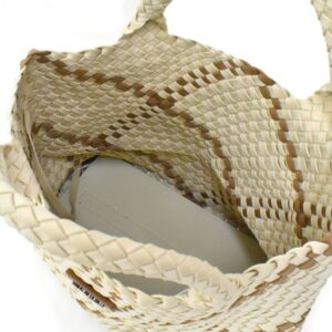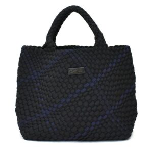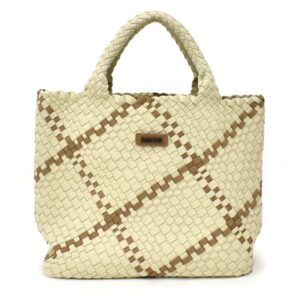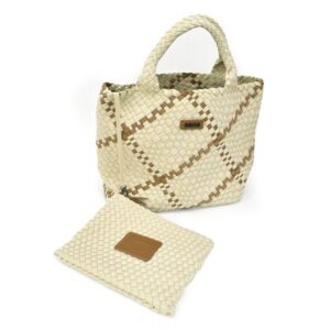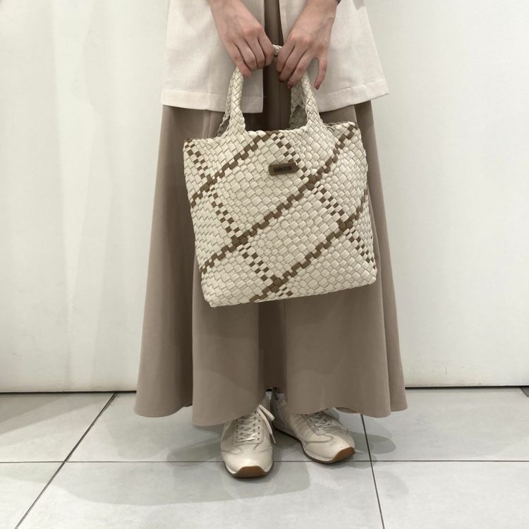 同素材のポーチがセットになっているので、荷物の仕分けもらくらく。バイカラーの大きな編み目模様が装いのアクセントになり、持つだけでおしゃれに垢ぬけるハイセンスなハンドバッグです。