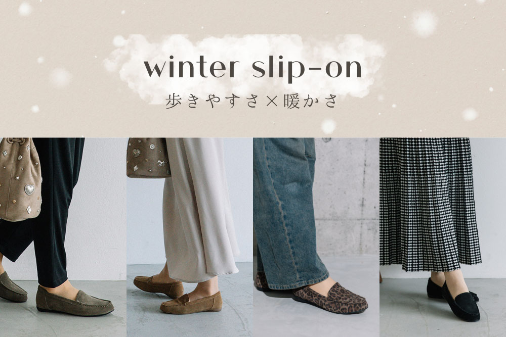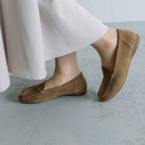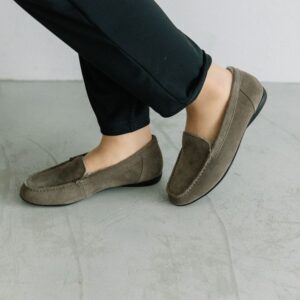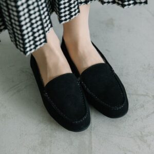 シンプルなデザインとスッキリとしたシルエットで、カジュアルからフェミニンなスタイルまで幅広く使えます。やわらかな牛革ベロア(シルバーのみ羊革)を使用しているので、ストレスフリーな履き心地。サッと気軽に履けるのもポイント。