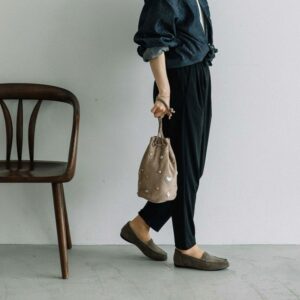 コンパクトながら長財布など必要な荷物はしっかり収納でき、普段使いからちょっとしたお出かけにもぴったり。シンプルなコーディネートにプラスするだけで、こなれ感を演出できます。軽量で持ち運びやすく、ドローストリング仕様で開閉も簡単です。