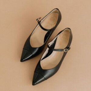 シャープすぎないポインテッドトゥで、上品さと柔らかさを兼ね備えたデザインです。