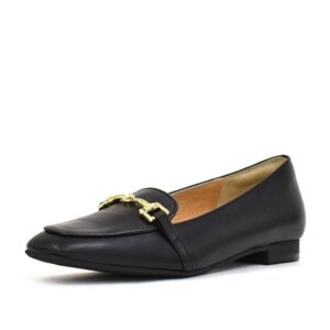 知的で落ち着いた雰囲気を漂わせる、ビット付きローファーデザインの通勤パンプス。