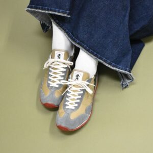 ダークベージュのアッパーやサイドのベロアのグレーとの相性も良く、
